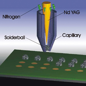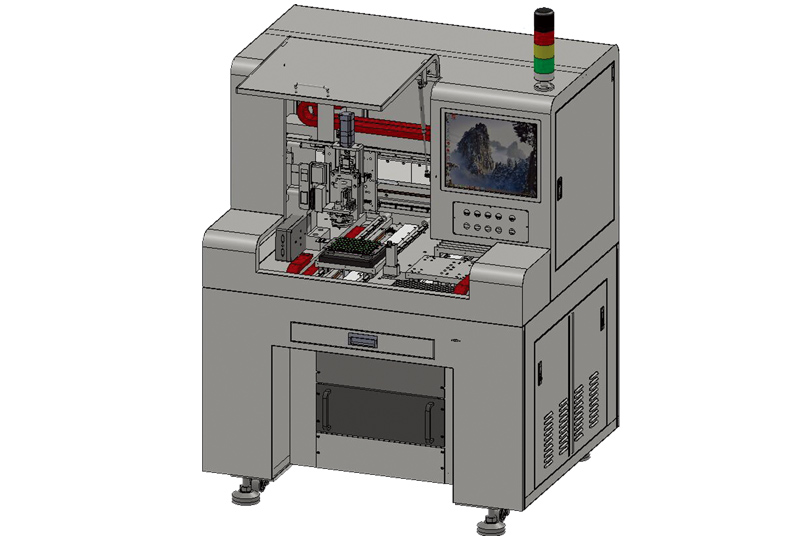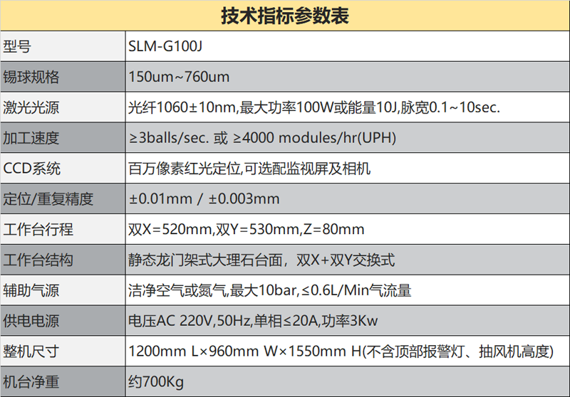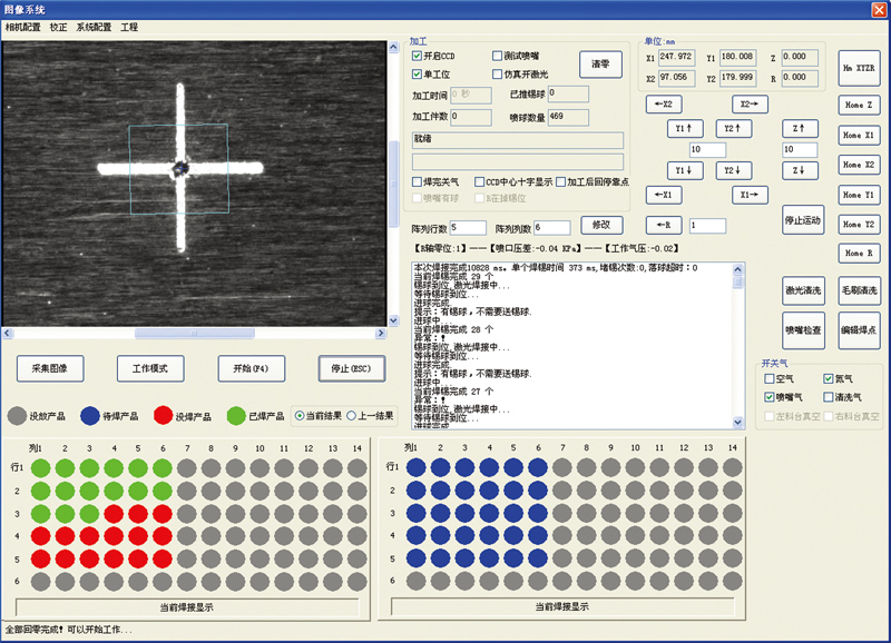 ■采用(yòng)了(le)桌面布局式雙X雙Y及焊接主軸同步工(gōng)作(zuò)的>π (de)六軸系統,具有(yǒu)大(dà)理(lǐ)石基面的(de)靜(jìng)态龍門(mé ±αn)架結構,設計(jì)了(le)環形密閉腔體(tǐ)、脈動移位式孔盤分(fēn)離(lí)送料器(qì)、儲✔β→₹放(fàng)BGA錫球并自(zì)動定向排序落球,配合高(gāo)精高(gāo)δ≠速直線馬達、無刷馬達等伺服控制(zhì)單元,以及正壓≤工(gōng)作(zuò)氣體(tǐ)參量的(de)精确傳感和(∞✘>hé)控制(zhì),使錫球熔滴能(néng)在細微(wēi)結構單元上(shàng),精φ•λ确而高(gāo)速地(dì)完成密集焊點的(de)噴射焊接。